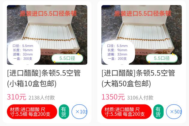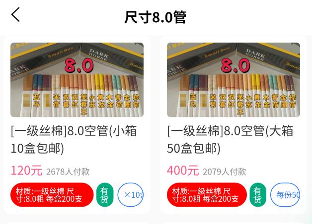 只按箱来发,小箱起十盒,大箱五十盒,每盒200支
